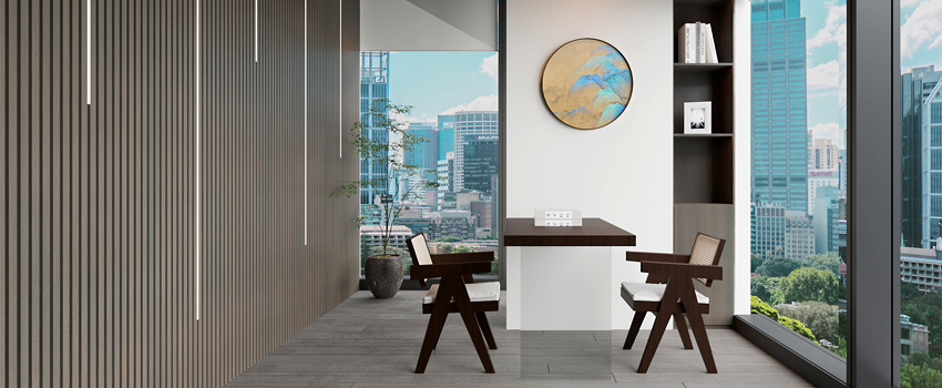見光不見燈的隱藏燈光設計,溫柔浮動的光喚醒極簡形態的空間,在一點點藏而不露中,優雅如影隨形……